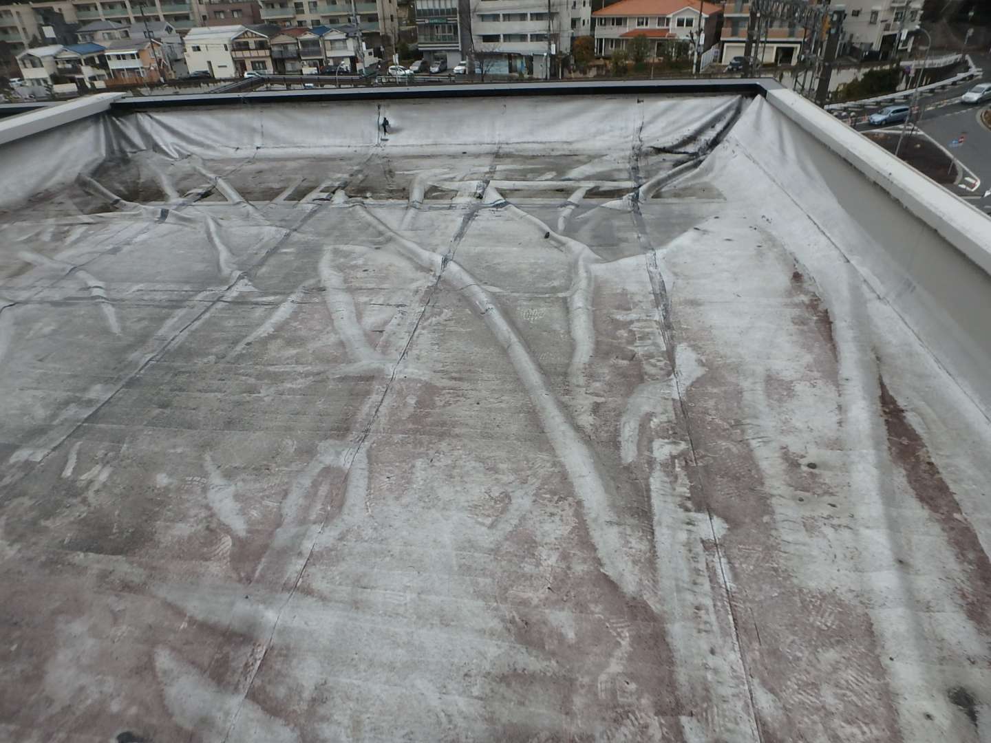 屋上既設防水の劣化に伴い、ゴムシート防水の施工を行いました。